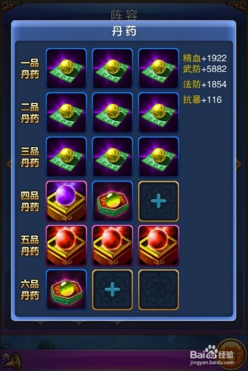 丹药品质:从1品到6品依次越来越好,加的属性更多
