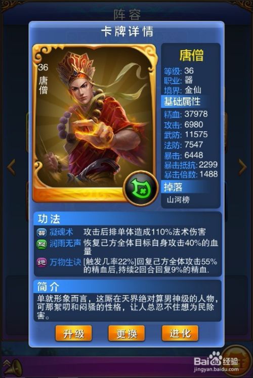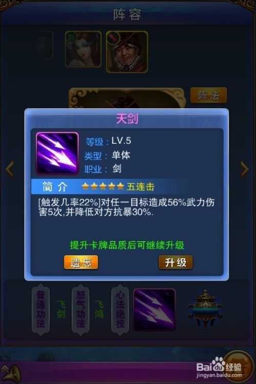 突神阵:全队增益攻击,五号位增益暴击,可升级。