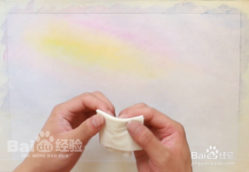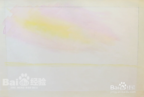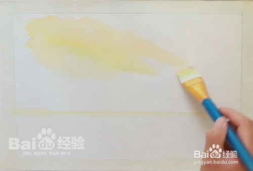颜料:中黄,在之前的调色中加入多量中黄,使淡黄色加深,再用大笔在第一层颜色基础上铺光源的第二层颜色。如下图所示: