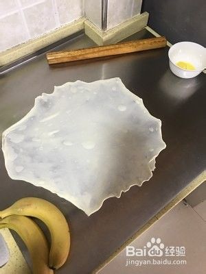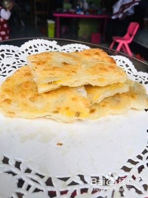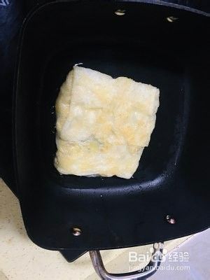 轻一点,因为这个面皮很薄的,不粘锅放点油,把整块饼放在不粘锅里面煎到两面金黄。