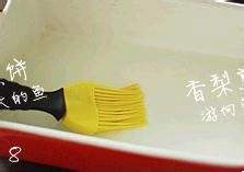 将7卷成卷,放入模具中,再上面撒上红糖,送进烤箱