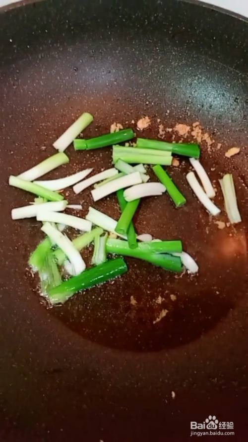 锅中烧油,放入葱段炒香,将切好的青红椒、木耳倒进去,倒入酱油翻炒均匀。