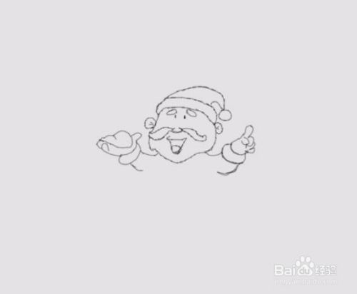 头部下面画出圣诞老人的两只胳膊及手部,如图所示: