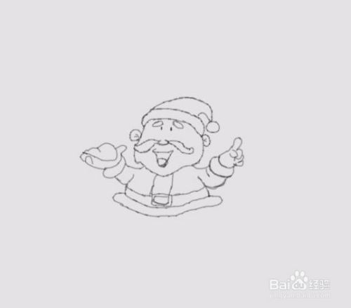 再在圣诞老人的胳膊下面画出圣诞老人的身体及身上穿的衣服细节结构,如图所示: