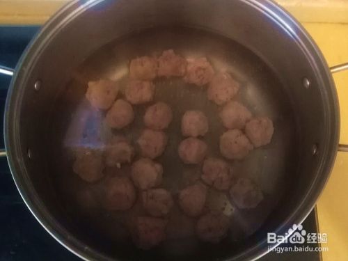 3、将搓好的肉丸子下入水里,由小火再转入大火烧开至肉丸子上浮。