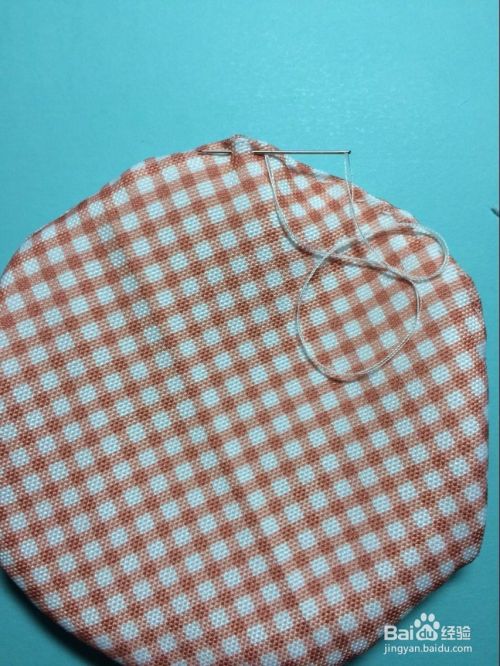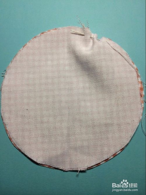 把逢好的圆布从口子里拉出来,同时翻到正面。再把口子缝好。