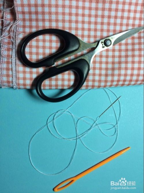 准备好做帽子的布,剪刀,针线,还有橡皮筋。