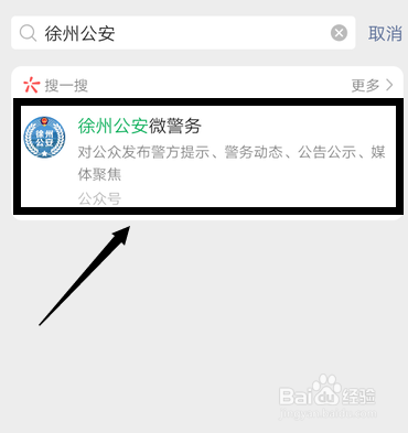 2、在搜索栏搜索“常州公安微警务”公众号。
