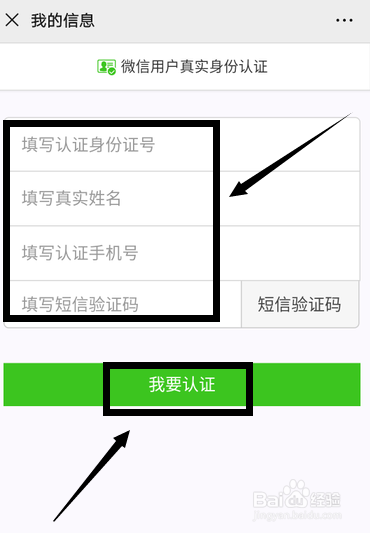 5、输入身份证号、姓名和手机号,点击“我要认证”。
