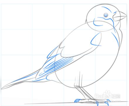 添加鸟的眼睛和爪,翅膀和尾部的细节。
