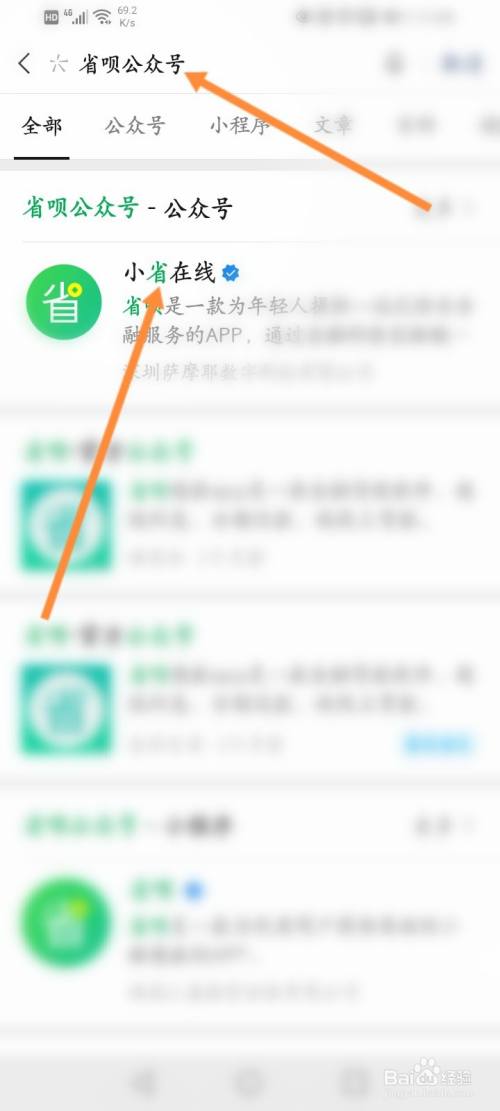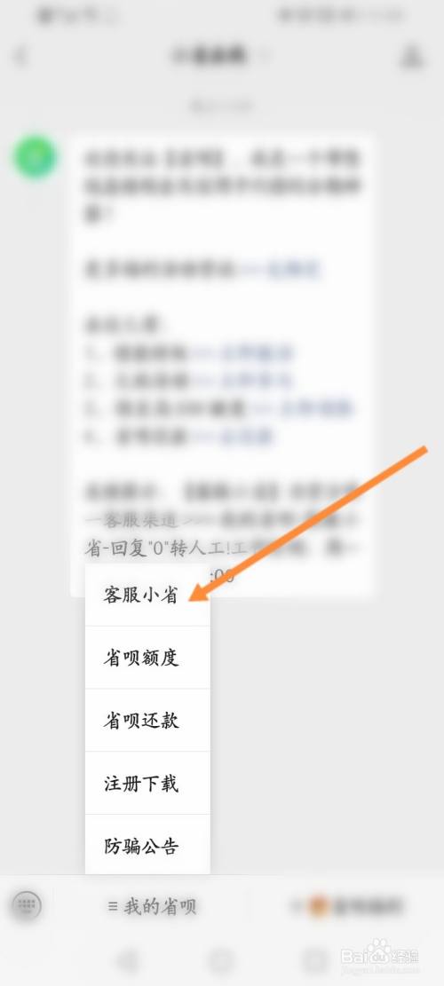 打开手机的微信,输入省呗公众号,点击小省在线。