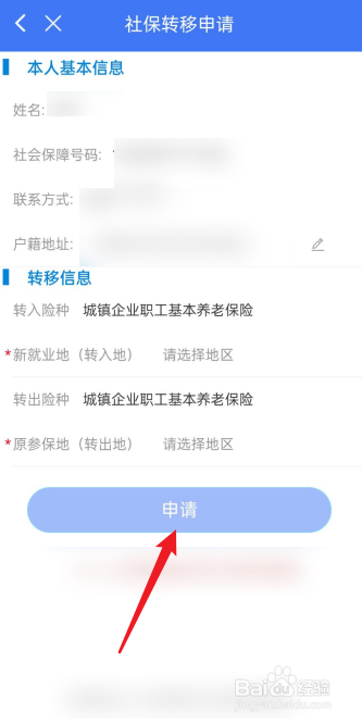 输入户籍地址和转入、转出参保地,点击申请即可。