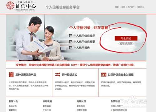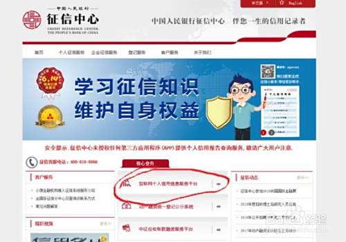 1、打开中国人民银行征信中心官网,点击“互联网个人信用信息服务平台”
