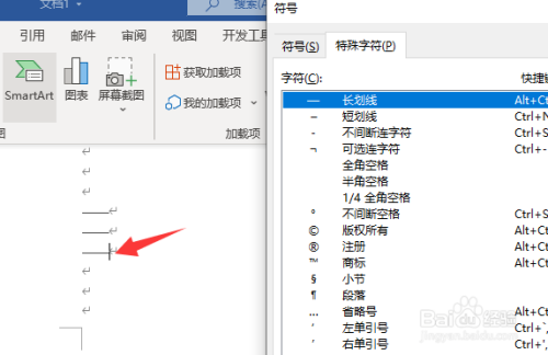 定位到文档需要输入长───符号的位置。