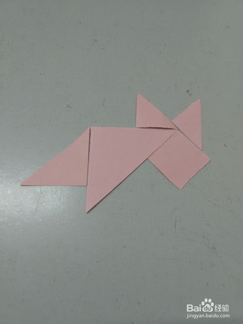 最后,在大三角形右边放一个平行四边形,表示牛的尾巴,一头小牛就拼完了。