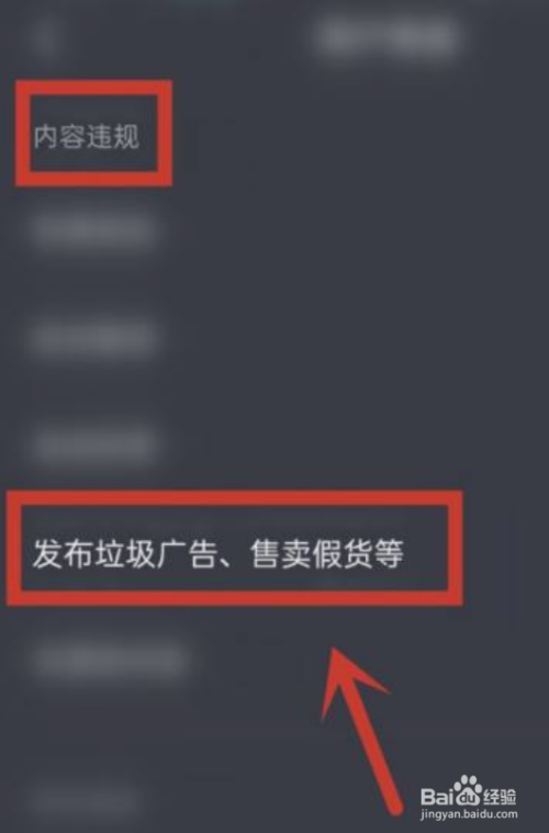 我们在用户举报页面中点击【内容违规】,选择【广告】。