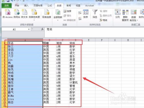 分割符号:例如这里我们按空格进行分别数据可以分别得到不同的列“姓名”、“国籍”、“班级”、“学科”。当然具体操作按实际需要进行。