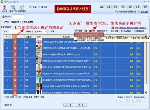 勾选要生成手机详情的商品,然后点击“一键生成”按钮,如下图所示
