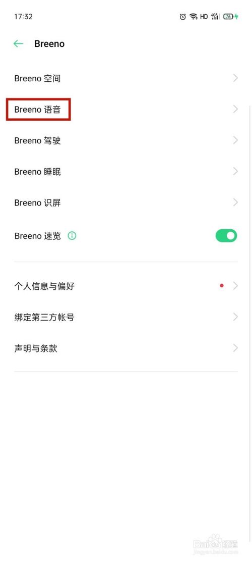 1、点击【设置】选择【Breeno】进入【Breeno语音】;