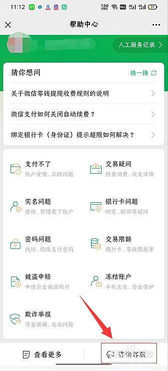 进入帮助中心点击右下角的咨询客服就可以联系微信客服了。