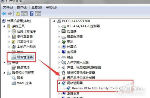 在设备管理器中找到“网络适配器”查看网卡是否正常。