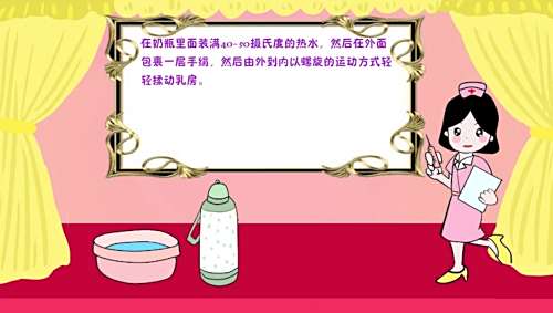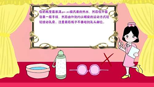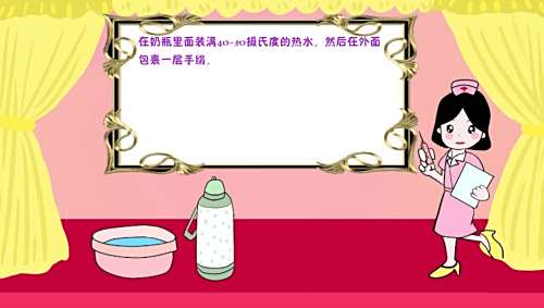 3奶瓶里装4o- 50摄氏度热水,在外面包裹一层手绢。