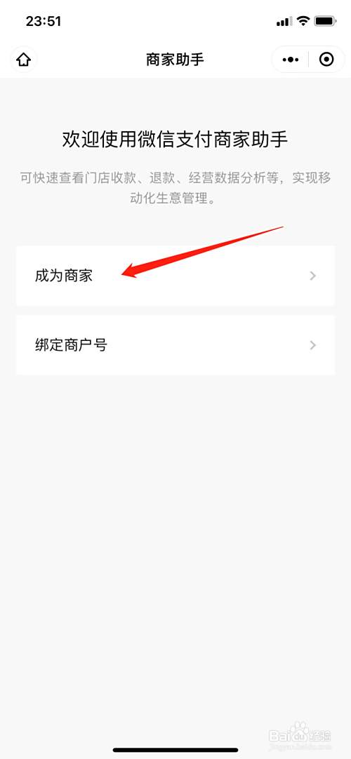 在微信上进入微信支付商家助手后点击【成为商家】。