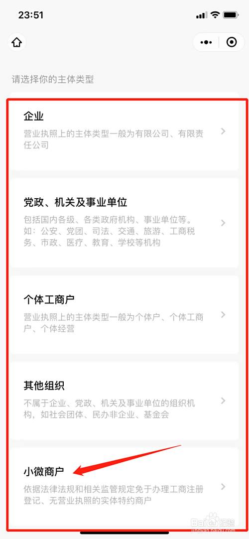 选择自己店铺的类型,这里以小微商户为例,点击【小微商户】。
