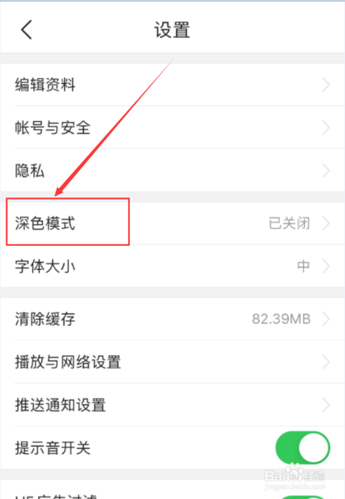 选中页面中的“深色模式”。