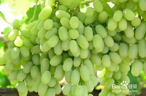 白牛奶葡萄因其果实的形状形似奶牛所以得名,色泽绿中又泛点乳白色,味道清甜爽口,让人吃了以后回味无穷,百吃不厌。最大的特点就是能剥皮切片,所以有着“刀切牛奶不流汁”的美誉。做成拔丝葡萄更是宴席上美味的佳肴。