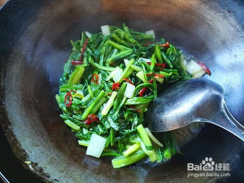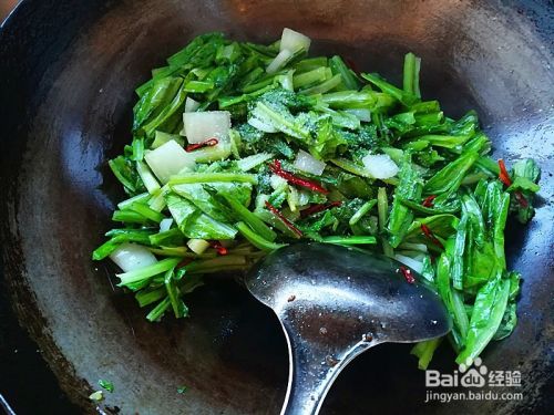加入适量的鸡精,炒均匀着火出锅。装盘,一道干红辣椒炒油美菜就做好了,既好看又好吃。操作也不难,赶快动手吧!