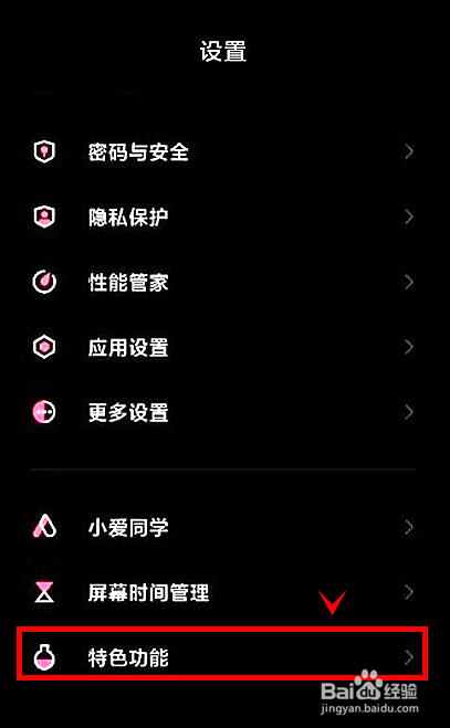 打开黑鲨4s手机【设置】功能——点开【特色功能】