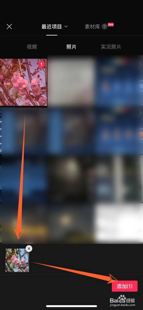 在照片列表中选中要剪辑的照片后点击【添加】。