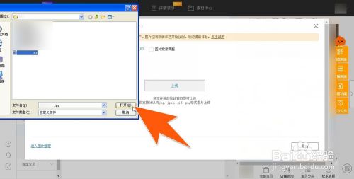 移上去后,就会显示”替换图片“的字样,点击它;在出现在页面上,点“上传”,再在窗中选好做为手机店铺招牌的图片,点“打开”。