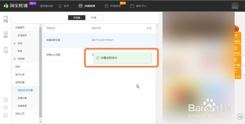保存后,在店招设置页上的左侧,就会有了相应的更改,现再点发布,就提示了“设置店招成功”,淘宝手机店铺上的招牌基本就是这样设置。