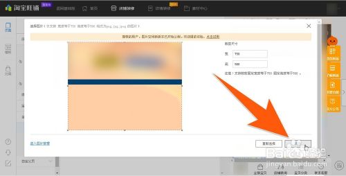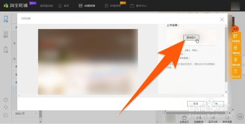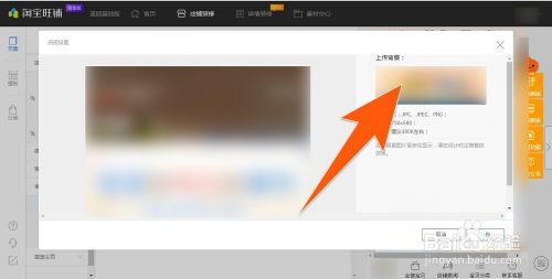 然后将鼠标移到店铺招牌上面,就会显示”设置店招”的字样,点击它,在弹出的店招设置页上,将鼠标移到右侧上方的图片上。