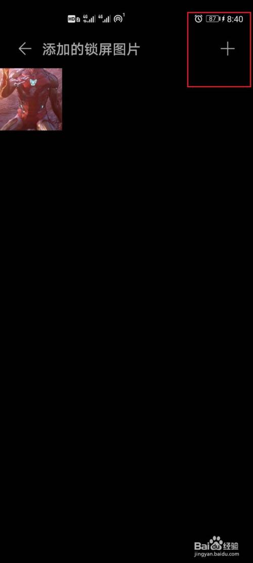 最后我们可以看到开启杂志锁屏下面一栏为添加到锁屏的图片,单击打开,弹出对应窗口,然后可以看到右上角有个+的符号,单击然后从图库里面添加你喜欢的图片就可以了。