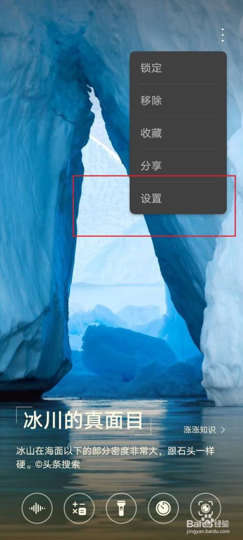 锁屏上拉屏幕,单击设置,取消对勾,添加自己喜欢的图片