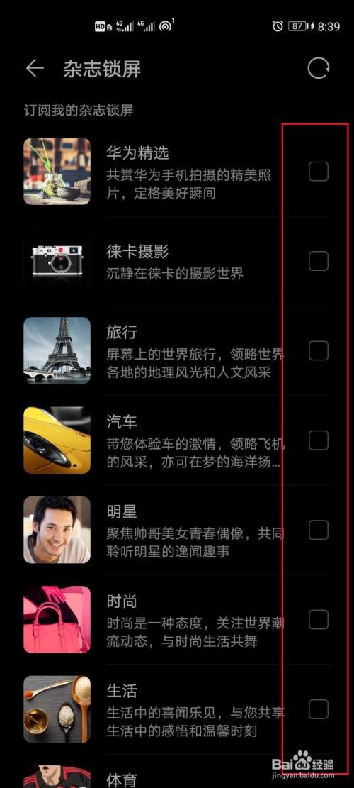 然后我们在已经订阅的杂志锁屏类型有更新就会自动下载在手机里。不喜欢的可以去掉勾取消订阅,就不会出现在相册里了。