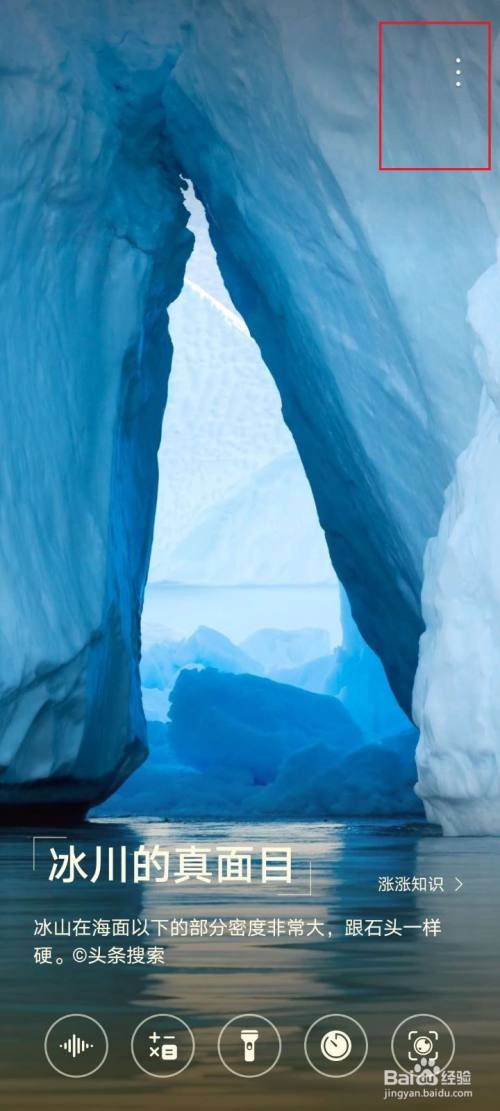 首先我们手机锁屏,按一下亮屏,先不要解锁,从屏幕底部往上拉动。这时候会出现很多菜单,我们需要操作的不是那些菜单,需要注意右上角有三个竖点,单击出现一个窗口。