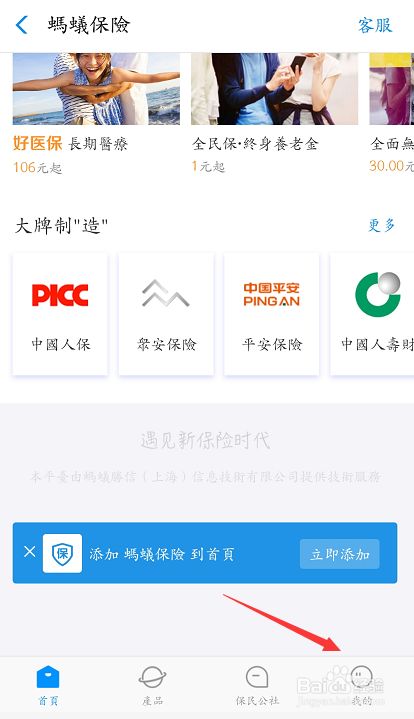 打开蚂蚁保险后,我们点击页面右下角的我的
