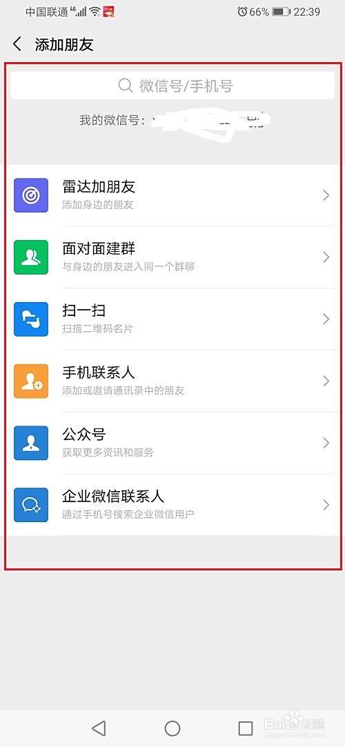 第三步进去添加朋友界面之后,可以搜索添加好友,也可以从通讯录添加好友