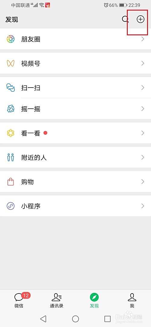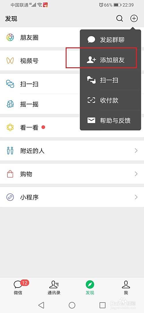 第二步下面来添加好友看一下,点击+号图标,选择添加朋友