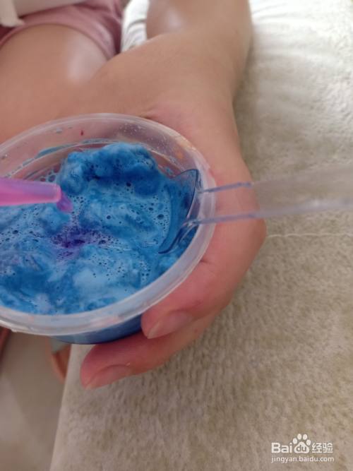搅拌的差不多后,加入定型水,先不要加那么多,少量少量的加。这样能避免加多了,没有拉伸性。