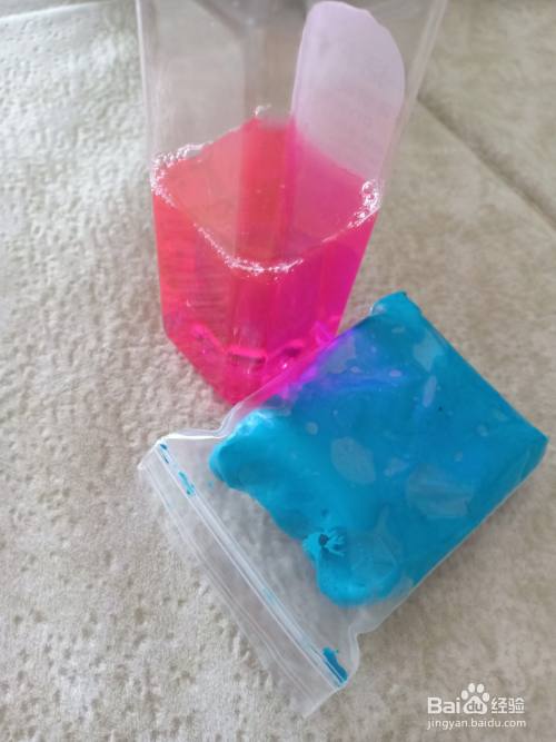 当定型水和粘土搅拌的差不多了,就可以拿出来,来回地拉伸揉捏。不显得水嗒嗒的,就制作完成了。你可以用其他颜色的粘土制作,拉出的气泡都是一样的。而鲜艳的颜色,会有拉出好看的花样形哦。