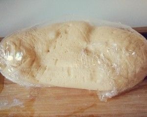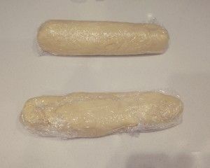 将和好的面分成两条,涂抹上食用油,放冰箱中第二天早上直接也使用。(放入玻璃盆中盖上保鲜膜也可以)
