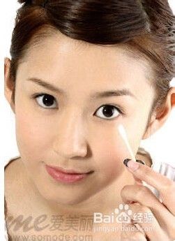 睫毛与眼影卸完后,眼线或眼影的残妆还遗留在细小的睫毛间或眼皮皱褶中。用棉花棒沾取卸妆液,以与眼睛垂直的方向小心擦拭。以免化妆品停留在脆弱细致的眼周肌肤上,伤害肌肤。