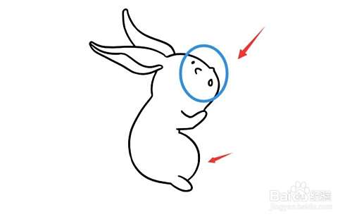 画出小兔子的身体轮廓,画出眼睛嘴巴等表情。