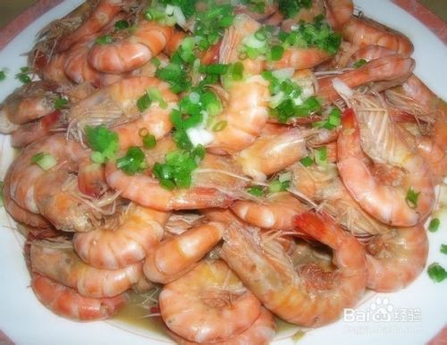 材料:斑节虾16只,盐,酒,姜片3片,味精少许。