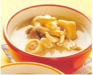 功效:猪尾和凤爪皆含丰富的胶质,对丰胸很有助益,如果只喝汤,也很不错唷!